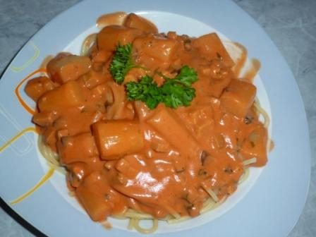 - Mit der Sahne ablöschen und Tomatenmark unterrühren