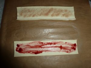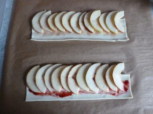 • In der Zwischenzeit die Blätterteig-Streifen mit Marmelade bestreichen und/oder mit Zimt bestreuen