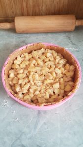 • Jetzt könnt ihr den Boden mit der Apfelmasse füllen