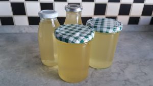 • Nach den 3 Tagen müssen die Blüten und Zitronenscheiben abgegossen werden. Entweder durch ein feines Sieb, oder, was noch besser ist, durch ein Mulltuch